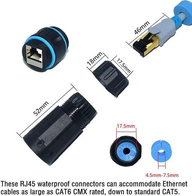 The female to female RJ45 ethernet lan cable coupler is used to turn the standard CAT5/5e/6 patch cord into the waterproof type for the ethernet connecting in the harsh industrial or outdoor environments. A gasket seal provides opm protection from moisture and other contaminants with an IP68 rating. Using the standards based RJ45 connection system insures compatibility with existing hardware. The shielded coupler maintains the shield continuity offering protection from EMI/R interference.