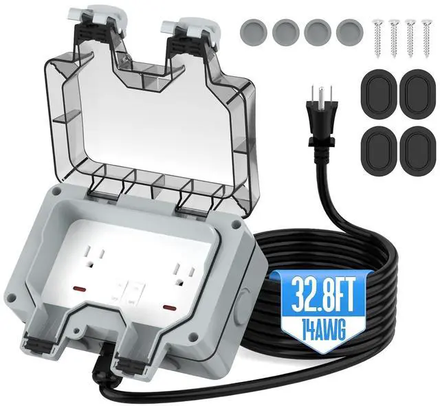 Dual Power Convenience: Double plug socket (NEMA 5-15R) design allows you to connect two devices simultaneously, perfect for outdoor lighting, tools, and appliances