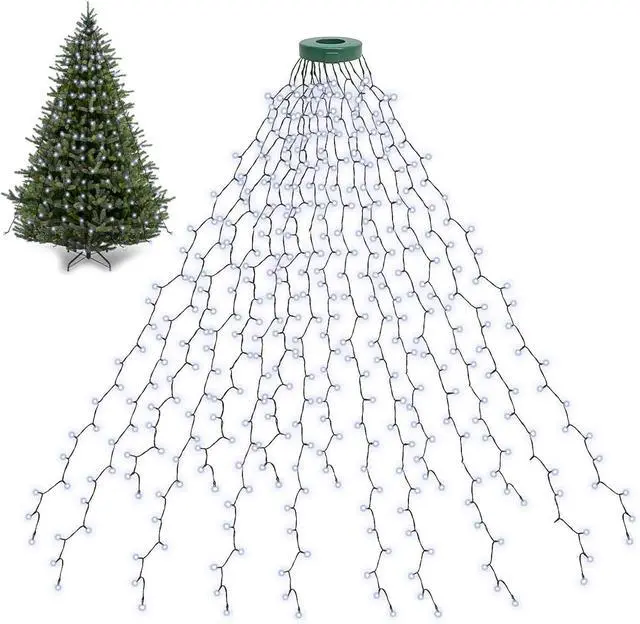Specications: 592 LED warm white lights, 16 9.8 ft string lights, 37 lights per string lightslead length 16.4 ft. The tree lights is suitable for 8ft-10ft Christmas tree (It also can be used for smaller Christmas trees, but the light strip will be longer, fold it and place it on the Christmas tree)