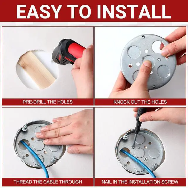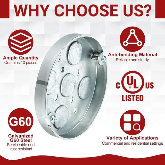 Ideal Sizing: with a whole diameter of approximately 4 inches, these shallow outlet boxes can comfortably house your wiring while not imposing too much on your ceiling space, designed with 5 holes that are 1/2 inch deep and 1/2 inch bottom knockouts, providing an ideal choice for mounting ceiling fan and wall lighting