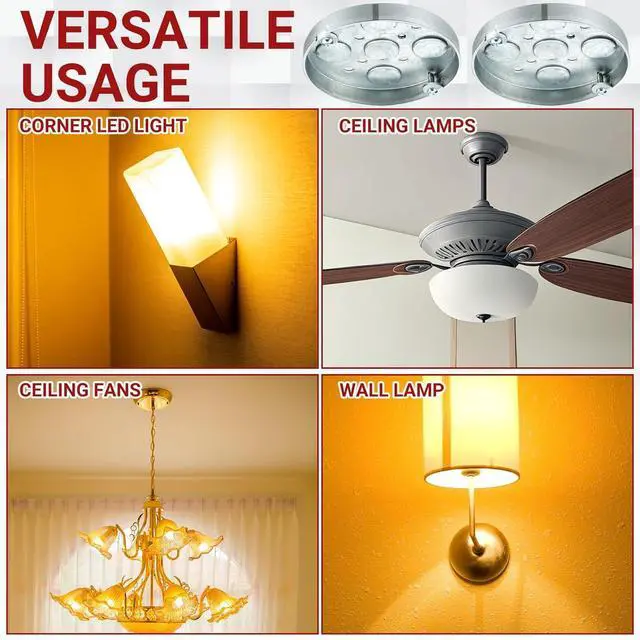 Versa Usage: these ceiling fan electrical boxes have conduit knockouts or camps for nonmetallic sheathed cable, can accommodate versa uses, including lighting xtures, ceiling fans, ceiling lamps, and other electrical devices, their versatility adds to their appeal for those looking for a multipurpose solution for their electrical needs at home, living room, ofce, computer room, garage, factory and other occasions