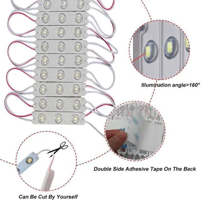 Every 3-LEDS cuttable without damaging the rest strips, according to your requirement Self-adhesive back with Adhesive tape for secure and easy application