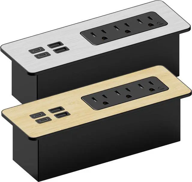 Great Table ration & Space Saver: We designed 2 different colors (Silver & Wooden) of alternative charging panel plate stickers. This allows you choose different panel stickers according to the color of the desk surface, so that this recessed power strip can better integrate or match with the overall environment. Besides, hidden below the furniture surface make it looks more clean and tidy.