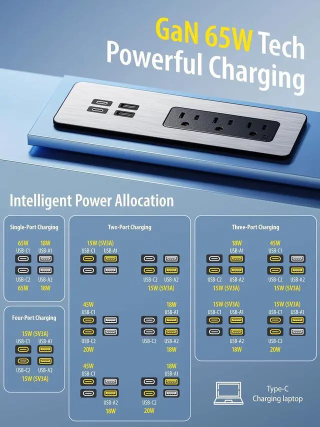 Some Other Main Features You May Concern: 900 Joules of Surge Protector Power Outlets. USB-C Laptop Charging Supported. Tamper-Resistant Function. 6 Ft Extension Cord. DC Over-Current Protection.