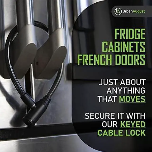 Introducing the refrigerator child lock a versa, easy-to-use solution to enhance your home safety. Crafted by, a trusted name in security, this fridge door lock is designed to keep prying hands away. Secure your side-by-side and French door refrigerators with ease. This french door fridge lock also adapts as a cabinet door lock, stroller lock, or kitchen cabinet lock, offering security for multiple uses indoors and outdoors. Say goodbye to complex combinations! Our refrigerator locks for children feature a straightforward key system, giving only authorized users access. Built with high-quality materials, these durable cabinet locks withstand regular use. Installation is simple just place the lock around your fridge or cabinet door handles; no special tools are needed. In minutes, youll experience added security and peace of mind. With s refrigerator and cabinet door locks, you get more than a product you get a practical solution born from real-world experience. Enhance your home security with the fridge door lock and enjoy condence in quality protection. Order now and secure what matters.
