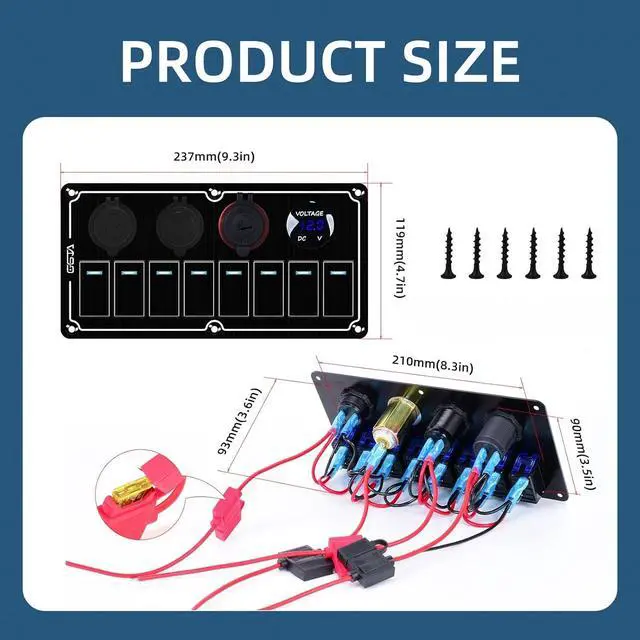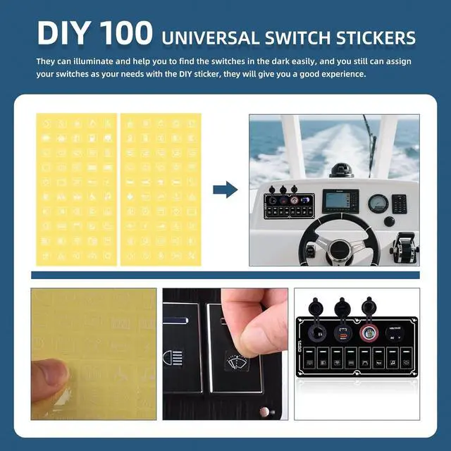 After-sales guarantee and packaging includes: This Marine Switch Panel comes with black installation screws KM4*20mm self-tapping screws, DIY stickers pre-wired switch panel with connection instructions manual, which can be DIY according to your specic needs. Enjoy a one-year quality warranty under normal use. We provide customer technical, so if there are any technical issues, installation or usage issues, please feel free to contact us.