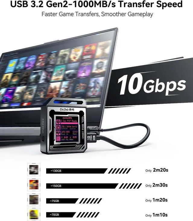 Blade-Inspired Gaming Design & 2230 NVMe Compatibility: Exclusive Blade design with sharp edges and a bold gaming aestheticlooks like a desktop accessory or art piece. Supports M-Key and B+M Key NVMe PCIe SSDs up to 2TB via USB-C with UASP for fast, reliable transfers