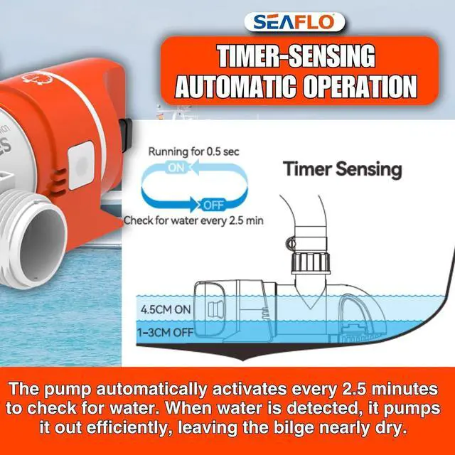 to check for water. When water is detected, it pumps it out efciently, leaving the bilge nearly dry.
