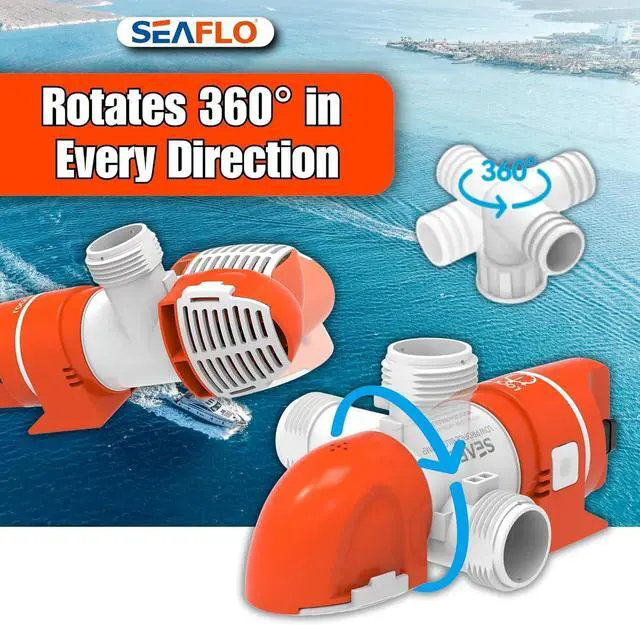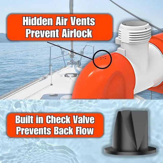, allowing for flexible horizontal or vertical installation to suit your needs. Built-in check valve prevents water from flowing back into the bilge, ensuring a dry and efcient bilge system.