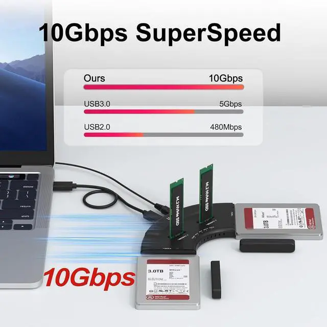 Tool-Free & Portable DesignDesigned for on-the-go professionals! This tool-free M. 2 SSD enclosure allows for instant setup anywherecoffee shop, home studio, or ofce. The protective cover keeps SATA ports safe during travel while open M. 2 slots allow quick drive swaps. It's a compact and portable hard drive reader that ts perfectly in your backpack alongside your laptop. Unlike bulky stations, this USB hard drive adapter is your all-in-one, mobile solution for external hard drive access anywhere.