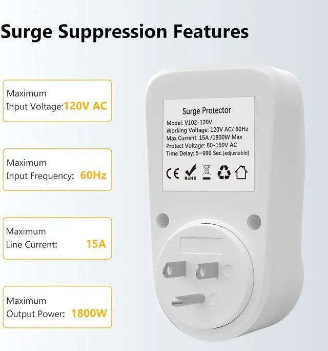 LED Digital Display-Wider Use: The updated design of the digital display clearly and conspicuously shows the current operating status. Compact wall outlet surge protector can be plugged in directly, suitable for all kinds of applicable equipment, refrigerators, air conditioners, freezers, TV, ice makers, washing machines, microwave ovens, dishwashers, coffee machines, bread machines, water heaters, and electric fans, etc.