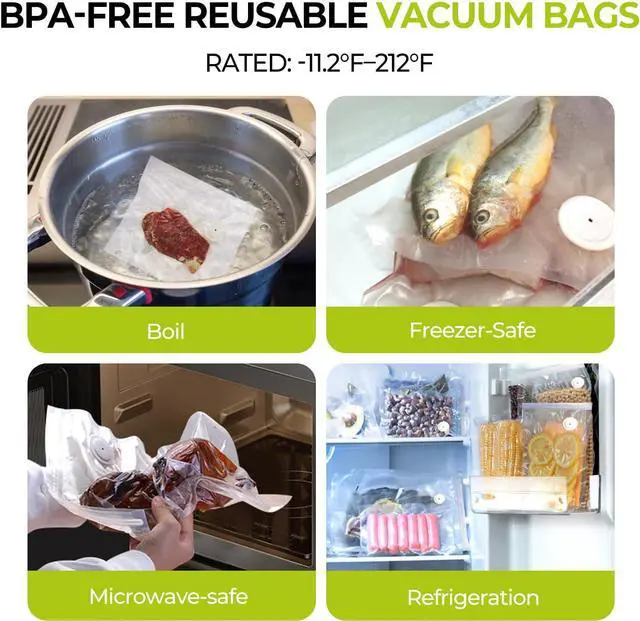 PERFECT FOR FOOD STORAGE: Cook meat, sh, or veggies evenly for rich flavor with this compact vacuum sealer for food. Great for seafood, mushrooms, fruits, dry goods, pizza, leftovers, nuts, coffee beans, sous-vide, prepared foods, etc.