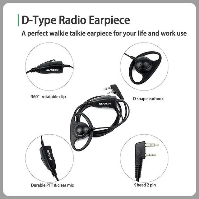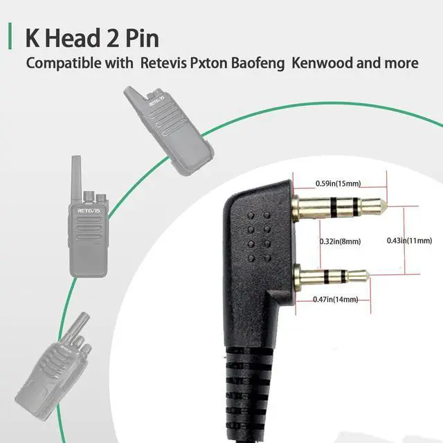 K Head Plug 2 Pin Walkie-talkie earpiece with K head 2 pin. Compatible with RT22 RT21 RT68 RT68H H777 H777H RT27 RT86 RT86A RT86S walkie talkies. Compatible with Pxton BF-888S BF-T26 Kenwood and more.
