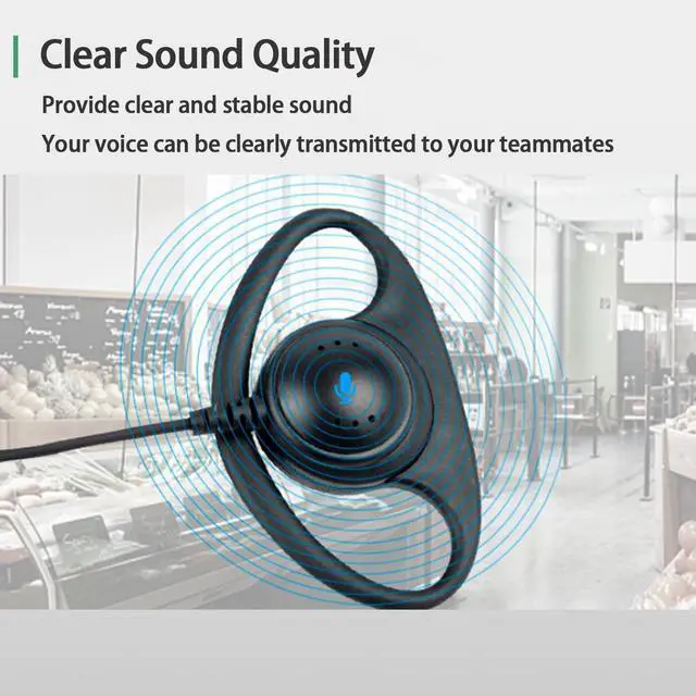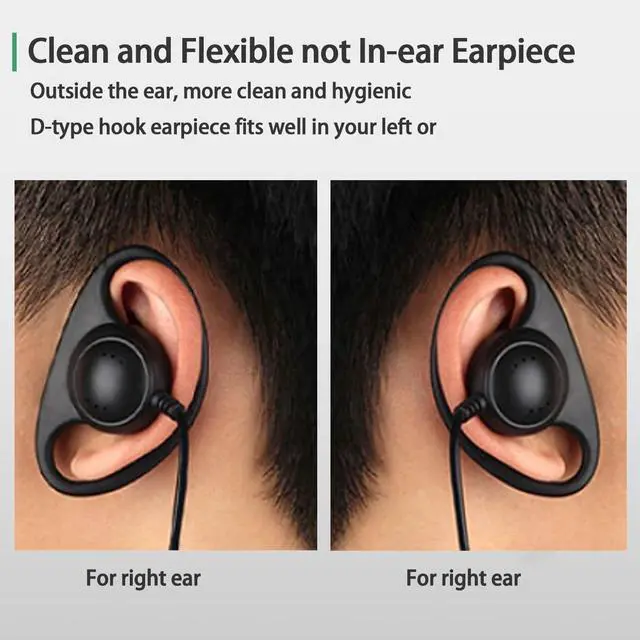 D-type Earhook for Left or Right EarsD Shape Earpiece is a flexible, yet stable earpiece with an around-the-ear "D" ring style loop to hold the earpiece comfortably in place. The earpiece rests against the outside of the ear and works on right or left ear.