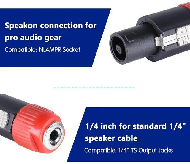 Wide Application Compatibility It is big money and time save to use speakon to 1/4 converters joining your audio cables together. It is applicable for high power loudspeaker, stage monitors, console boards, active speaker, powered mixers and subwoofers etc.