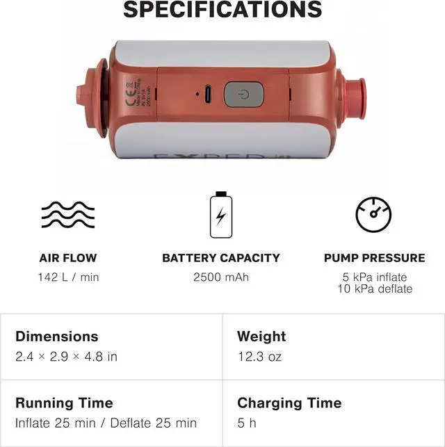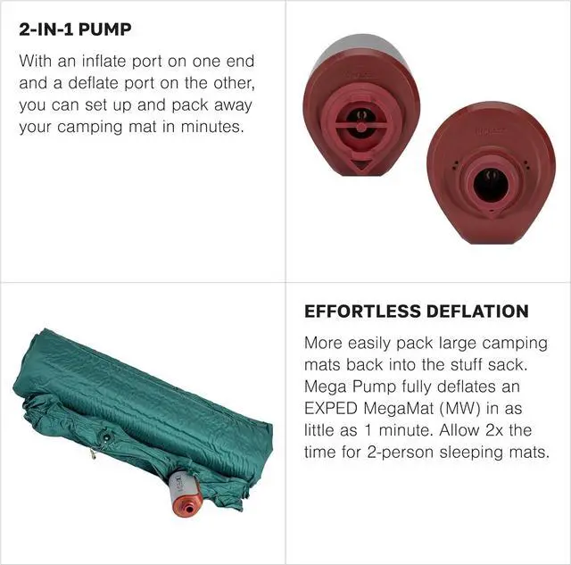 Efcient Operation: As a premium camping gadget, its dedicated inflate and deflate ports streamline the process of managing your self-inflating sleeping pad, with a convenient double-click operation system