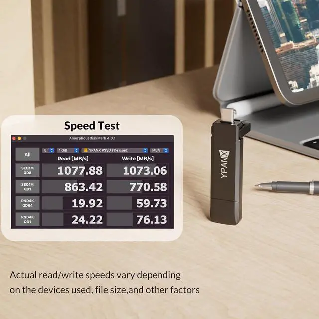 Compact, Portable & Widely CompatibleMeasuring just 3.3 x 0.8 x 0.4 inches and weighing only 1.58 ounces, the portable SSD is lightweight and travel-friendly. Its USB 3.2 Gen2 and Type-C dual ports ensure broad compatibility with iPhone 15/16 series, Android USB-C devices, desktops, laptops, car audio systems, smart TVs, PS5, and