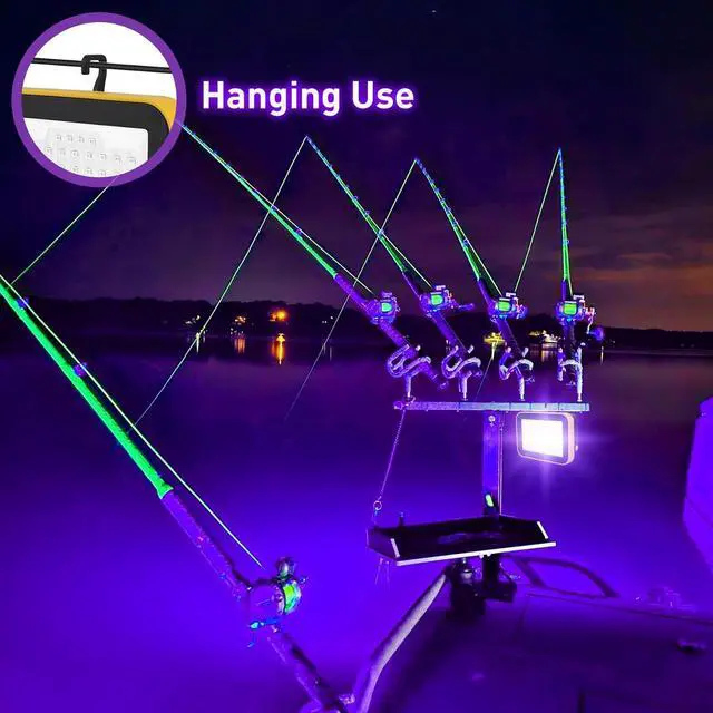 Excellent Fluorescent ResponseThis multifunctional portable black light features 49 super bright, high quality and energy efcient Led light sources to maximize distance and brightness. Perfect for illuminating most fluorescent paints, dyes and materials. It works especially well with neon-colored objects to create stunning visual effects. It's also great for nighttime riverbank shing and boat shing, among other uses.