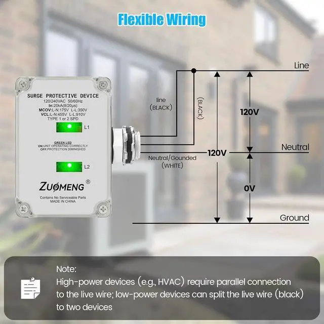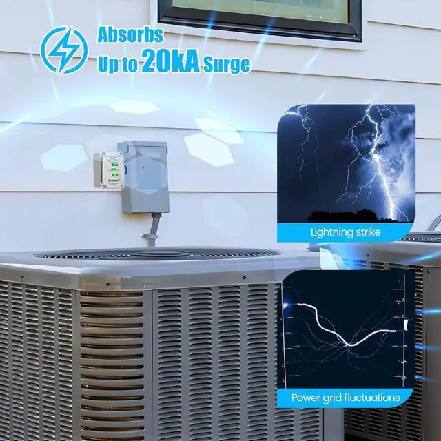 WIDE APPLICATIONS: This SPD supports 120/240VAC and is suitable for residential and commercial HVAC systems, such as compressors, motors, and fans. The side-threaded design makes installation easy and ensures seamless integration with existing electrical systems