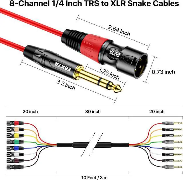 Worry-Free Service: This package has an 8-channel XLR Male to 1/4 adapter 10ft, We strive to provide customers with satisfactory products and services, if you have any questions about our products, please feel free to contact us, and we will reply to you P