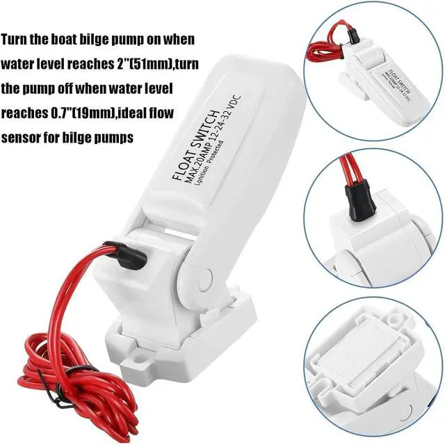 Automatic Float Switch: The metal contacts of the bilge pump float switch h to conveniently turn the pump on when the water level rises and off when the water level falls; this feature ensures that the pump operates automatically, and the base is removable for easy cleaning and maintenance