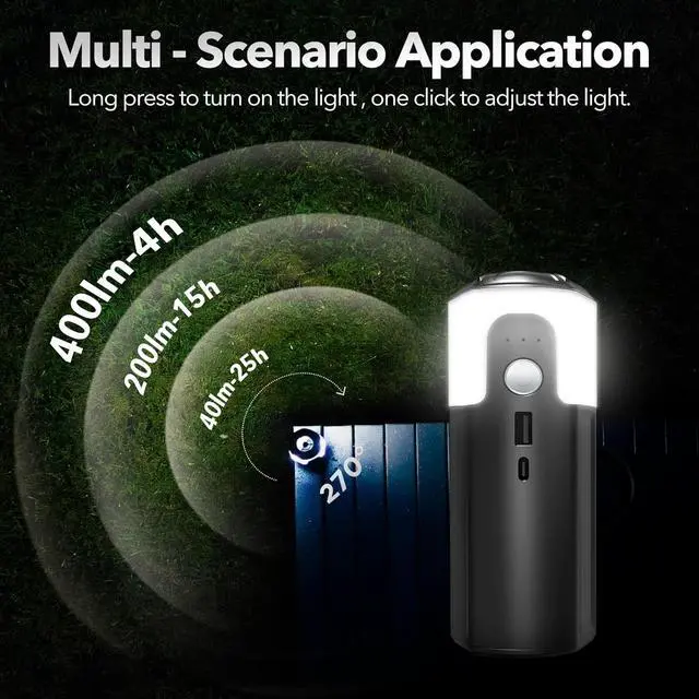 Camping Lantern& Portable: 17 is equipped with 32 LED lamp beads, and 3 levels of brightness with a simple push of a button, 17 can bring you bright light up to 600lm and illuminates a larger area up to 20m² campsite. You can adjust the brightness according to your needs in different environments. Lighting time up to 20 hours