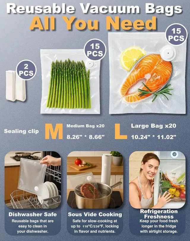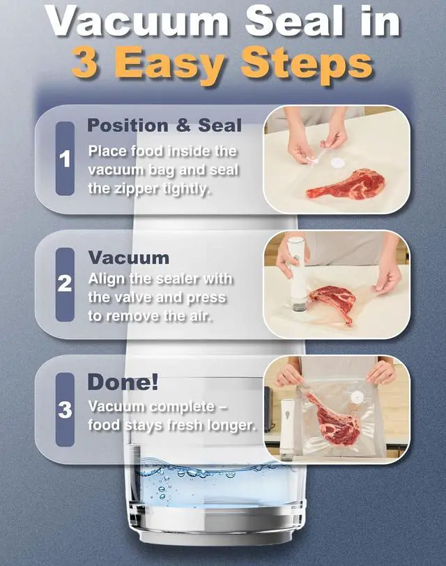 Extended Freshness Lock Achieve airtight protection in seconds with one-touch sealing for dry foods like grains, coffee, or snacks. For liquids (soups, sauces), use staged sealing to prevent spills. The reinforced bags maintain optimal humidity control, proven to slow spoilage in produce, meats, and nutsextending shelf life by up to 6x compared to standard storage.