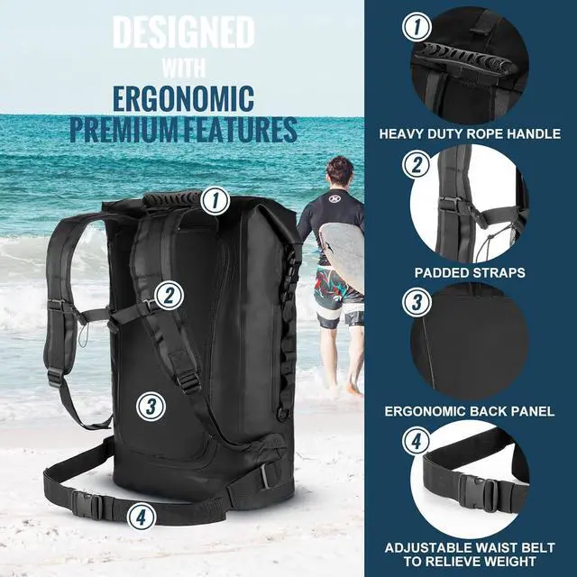 SIZE: 40LMax size after used35*21*55cm/ 13.8 * 8.3 * 21.7, Capacity: 40 Liter. Independent on different occasions and personal hobbies, you can choose the moderate capacity backpack for your trip. The 40 Liter dry bag is great for trips up to 1.5 weeks. Made to hold more than the basics, and tuck in a sleeping bag, clothes for up to two, food, and more. it carry and protect all your gear. If you do any water related things, this dry backpack would be a good choice.
