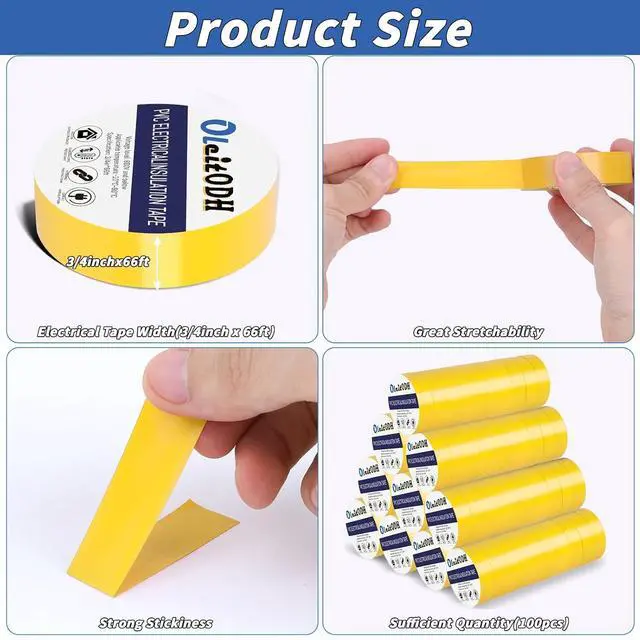 100 Rolls Yellow Electrical Tape Bulk 3/4 Inch x 66ft, Waterproof Vinyl Electric Tape High Temp Insulation Tape for Electrical Protection Home Outdoor Electric Insulating Wire Wrapping
