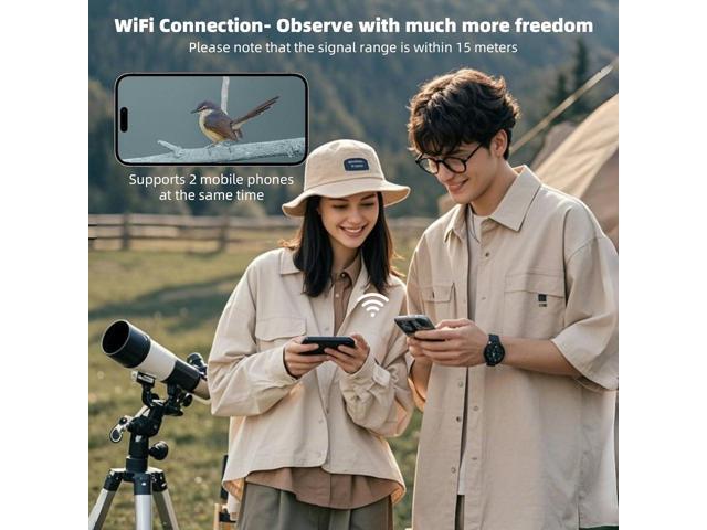 - 1.5 Screen & Remote Observing: The new upgraded Wi telescope camera is covered with a 1.5 IPS mini screen, more intuitively reflecting the observation content in the form of electronic images with high color reproduction. And the remote observing can be achieved via simple Wi connection (supporting dual- device connection within a 49ft range)