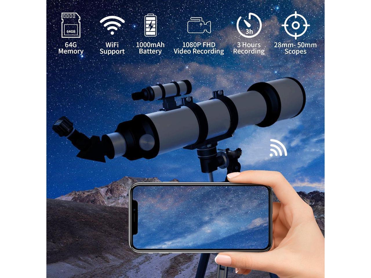 Wi Telescope Camera Eyepiece, 64G Electronic Eyepiece Camera with 1.5" Screen, Astronomy Camera ts to 28mm- 50mm Scopes, Perfect for Astropgraphy, Birds Watching