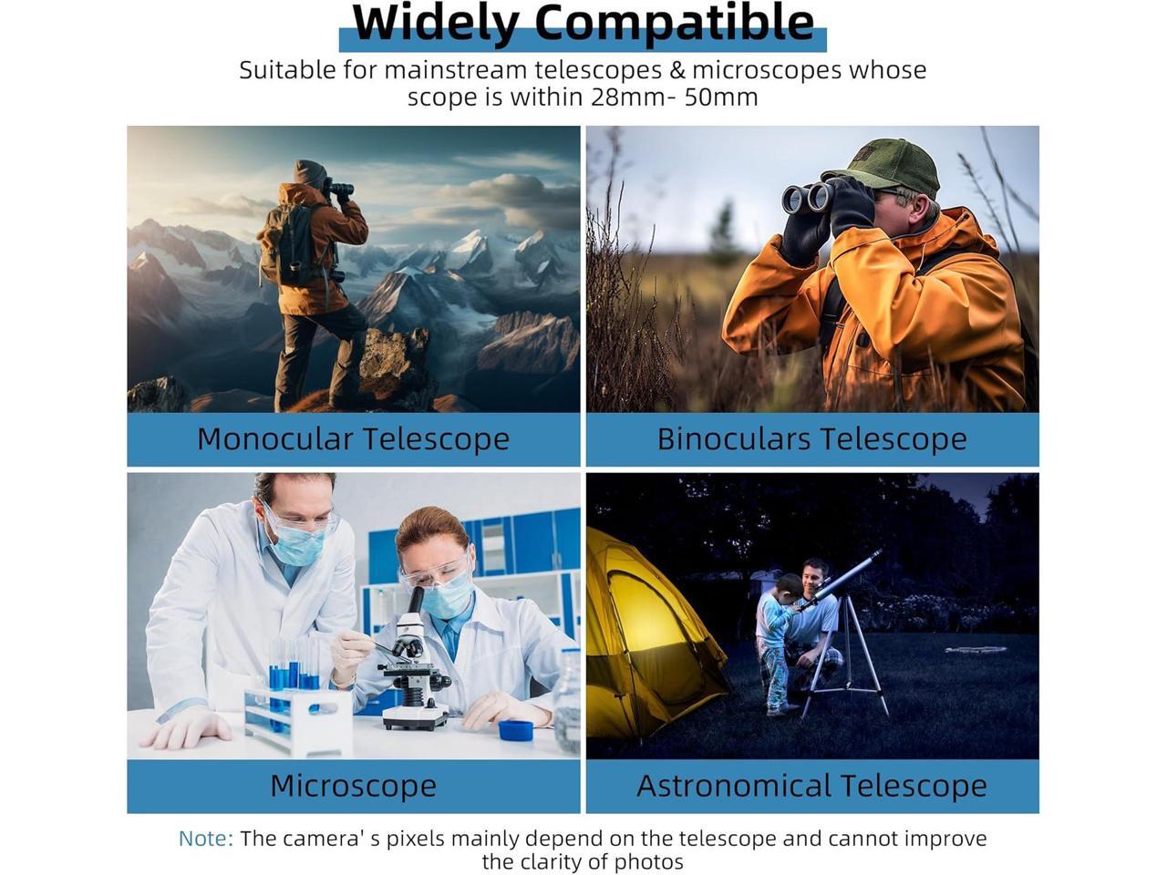 - Versa Compatibility: Equipped with the mounting groove, the telescope camera ts 28mm- 50mm scopes, supporting the pairing with not only basic binoculars and monocular, but also astronomical telescopes and microscopes. Realize multiple observation and record possibilities