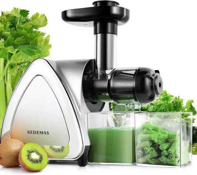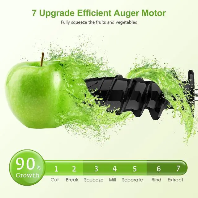 Quiet Operation: The electric juicer machine boasts a high-performing motor with exceptional noise reduction capabilities. Its 150W power ensures sufcient force to crush even tough carrots. Operating at less than 60dB, this masticating juicer runs quietly and is environmentally friendly. It's perfect for early mornings when other family ms are still asleep. Hard fruits are recommended to be cut into pieces for easier juicing and longer machine life