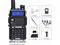 What's in the box? 4 x UV-5R radio with antenna, 4 x 1800mAh battery, 4 x Headset, 4 x Charger, 4 x Belt clip, 4 x Hand strap, 1 x English manual