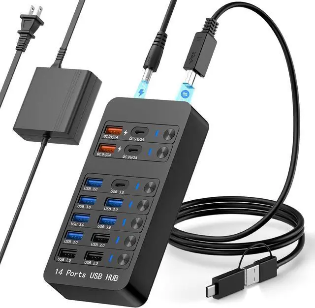 Independent LED On/Off Switches 7 dedicated switches let you disable unused ports to save power, safely eject hard drives, or isolate faulty devices without unplugging the hub