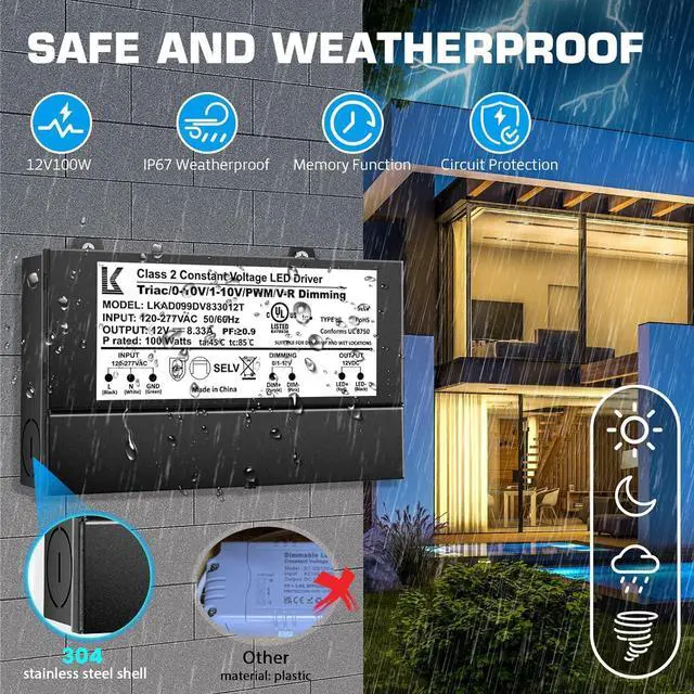 Built-in Protection: This dimmable LED driver with junction box is equipped with essential safety features, including short-circuit, overload and over-temperature protection. These built-in safeguards ensure reliable performance, protect your equipment, and extend the lifespan of the IP67 Waterproof 12V dimmable driver by preventing potential damage caused by electrical faults or excessive heat