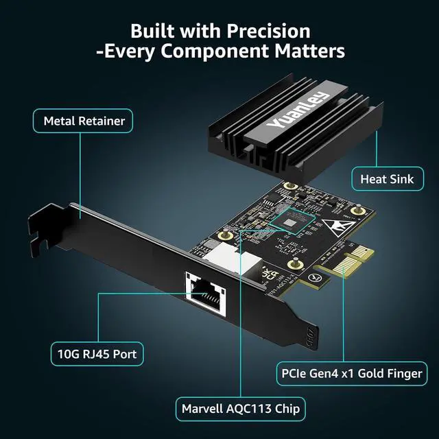 Stable, Reliable, and Efcient Gold-plated connectors, solid capacitors, and an optimized PCB ensure this 10Gbps network card delivers stable low-laten performance, giving your 10GBASE-T ethernet card maximum bandwidth and long-term durability.