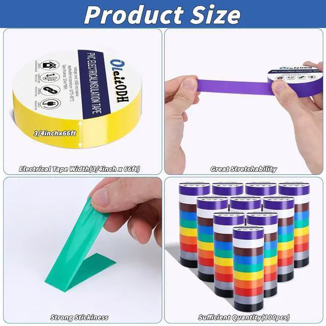Wide Application: Electrical tape colors are suitable for indoor and outdoor use, wires and harnesses in the automotive industry, electrical insulation, and various other uses around the home, and electrical insulation protection. In life, electrical tape colors can be used to mark different items in different colors so that they can be easily identied when needed and can be removed from the packaging for quick use.
