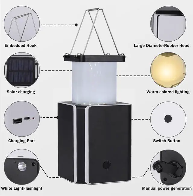 USB Rechargeable: LED Camping Lantern have type C base. And included type C charging cable in it. DC5V Charger can be matched. You can easily nd a suitable charger to charge it. (When you receive the light, charge it and use it again)