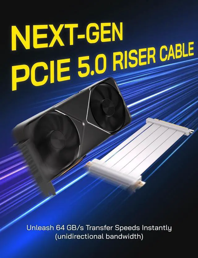 CHOOSE YOUR PERFECT T Available in 200mm and 300mm lengths with 90° and 180° connector options, this flexible PCIe 5.0 riser cable is ideal for clean, efcient vertical GPU setups.