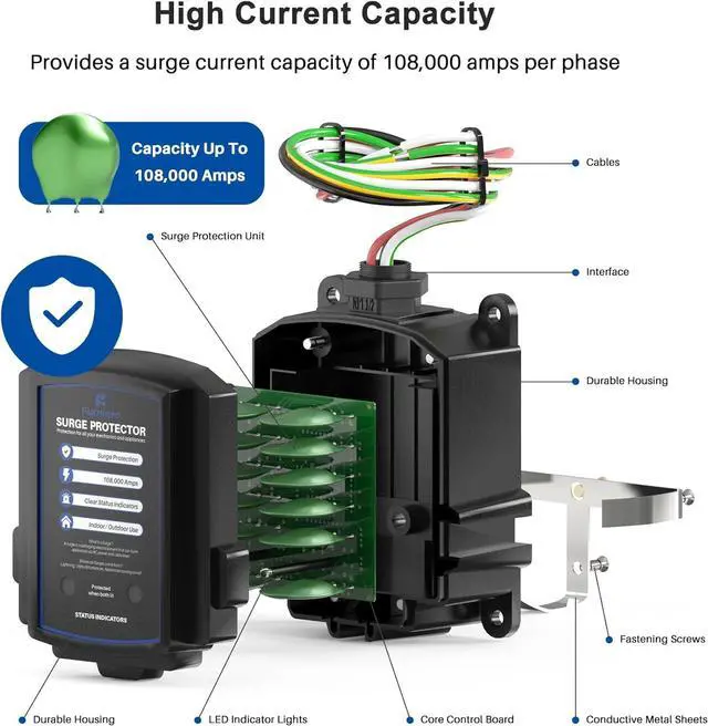 Effective Protection: With clear LED status indicators, you'll know your home is being protected. Its true value lies in preventing destructive voltage spikes, reducing the need for frequent appliance replacements and repairs, saving you time and money. Moreover, this device signicantly mitigates the impact of extreme weather conditions like thunderstorms, safeguarding your entire home