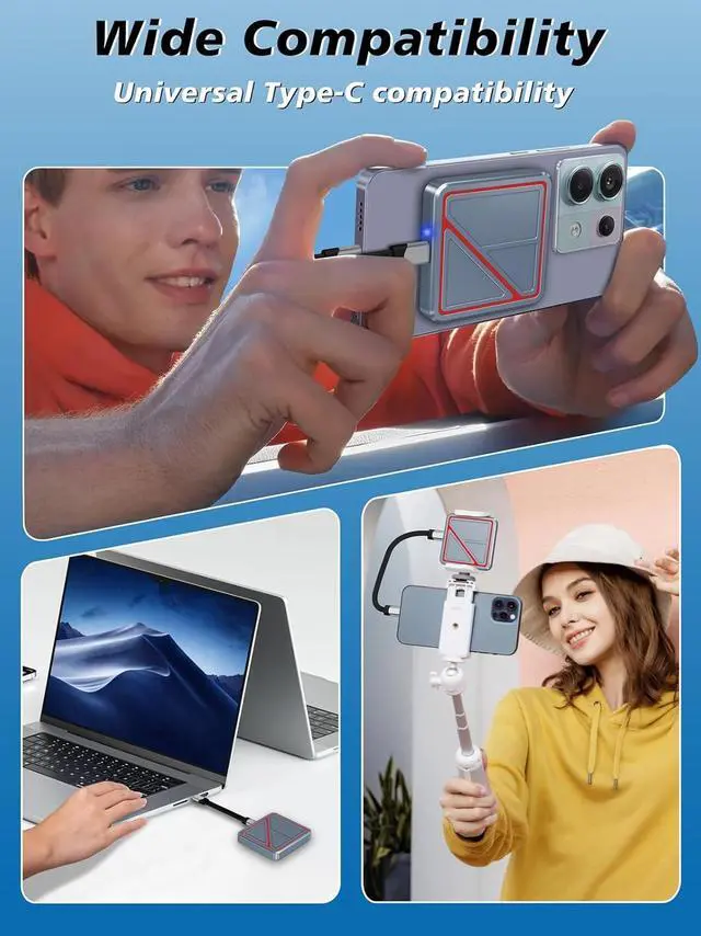 Wide CompatibilityThis magnetic external SSD is equipped with a USB Type-C interface, which is compatible with various devices, including tablets, laptops, Android phones, and game consoles. Its plug-and-play function enables real-time data acquisition and storage. For devices, this USB C SSD is only compatible with iPhone 15 Pro, 15 Max, 16 Pro, and 16 Max.