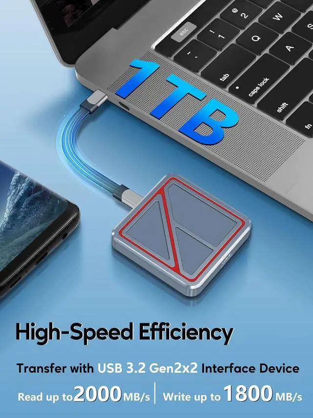 Rugged Construction This 1TB SSD for Android is crafted with durable, heat-resistant, and shock-absorbing aluminum alloy. The robust casing provides solid protection for the internal chips, ensuring your data remains safe and secure, never lost.