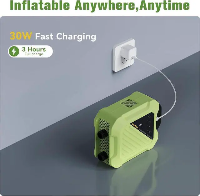 Auto Cooling TechnologyThis SUP electric air pump is equipped with an automatic cooling system, allowing it to reach up to 20 PSI for quick and efcient high-pressure inflation, all while maintaining a sleek design.