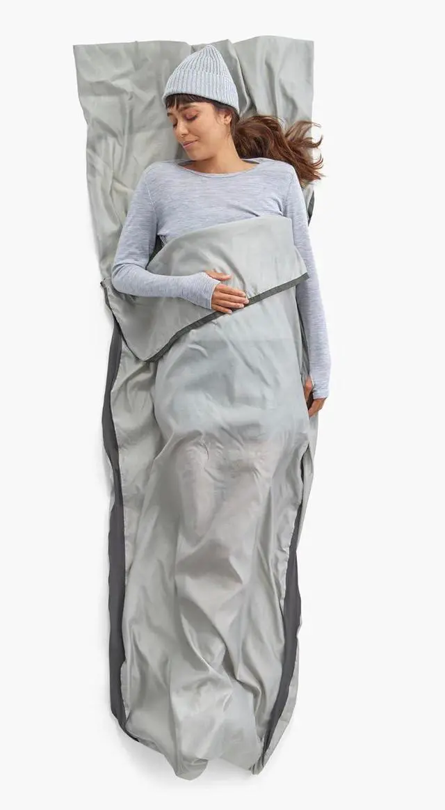 Designed primarily for comfort, the Silk Blend Liner adds warmth to your sleeping bag via the 72% Thermolite Pro yarns with infra red technology, Thermolite EcoMade bers and 28% silk. The combination creates a soft, luxurious sleep environment. Comfort Stretch Panels along the seams boost sleeping comfort. Shoulder openings and a drawcord footbox add temperature regulation (and match the Free-Flow zippers of sleeping bags).
