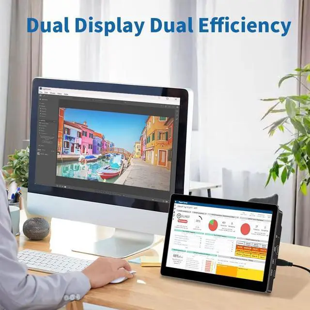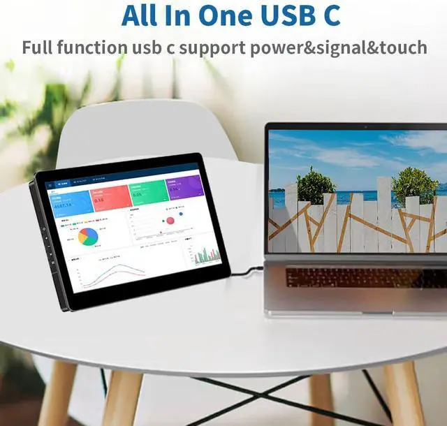 3Versa ConnectivityDouble Type-C Port -For Plug & Play, The Small Size Touchscreen Monitor Provides 2 Full Feature Type-C Ports Support Power Supply & Display Signal Transmission.