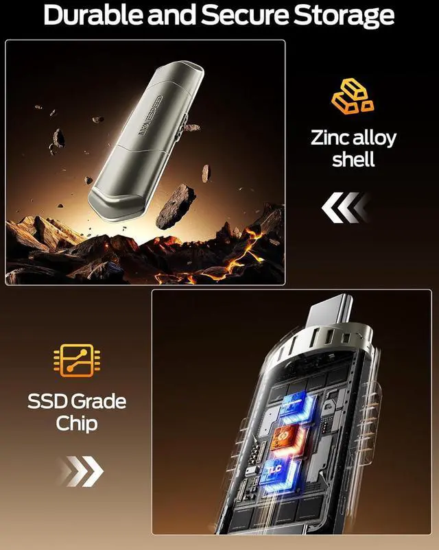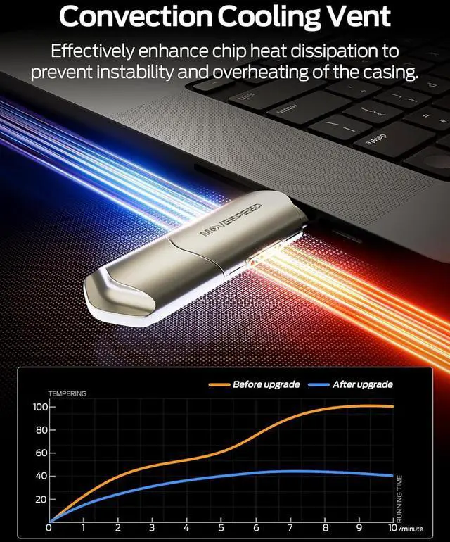 Magnetic Cap DesignThis portable usb thumb drive features a strong magnetic cover that snaps perfectly into place with a satisfying "click". This convenient design protects the USB port from dust and scratches extending the usb c ssd's service life while preventing the flipped cover from breaking device screens.