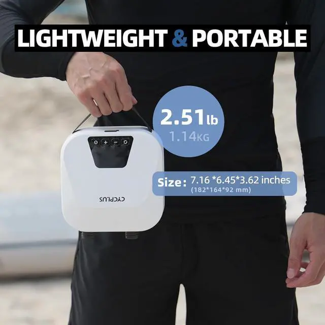 Package List Package includes: 1air pump, 150cm flexible hose, 6air nozzles, 1Boston nozzle, 1Type-c charging cable, 1user manual, suitable for stand up paddle boards, kite, tent, mattress