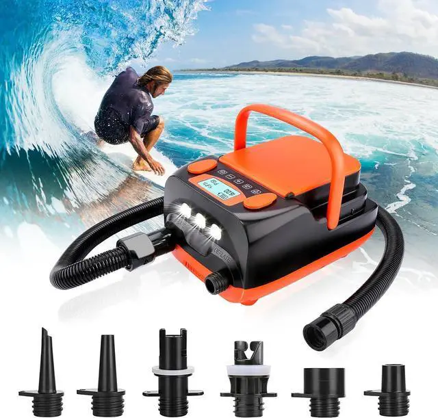 FEET DETACHABLE AIR HOSES: The inflatable SUP electric air pump compressor is equipped with a 3.3 -feet air hose with great mobility and flexibility. Therefore, you can deflate the stand-up paddle board in a convenient way. Moreover, you can also use it to inflate the watersports air-lled toys in your backyard swimming pool.