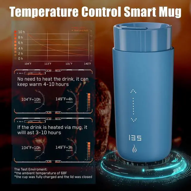 App-ControlledThis Smart Mug has an on/off time preset function on APP. This self warming coffee mug has two methods of temperature control for you to choose from. You can adjust the temperature directly through the touch button on the smart travel coffee mug and the APP on your phone. Convenient and fast, you can drink hot coffee anytime, anywhere.